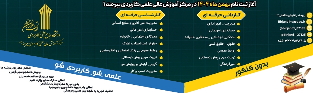 به اطلاع پذیرفته شدگان محترم می رساند: برابر شرایط ذکرشده در آگهی استخدام, جهت بررسی موارد زیر از تاریخ 1400/07/25 لغایت 1400/07/27 با در دست داشتن اصل شناسنامه, کارت ملی, مدرک تحصیلی, کارت پایان خدمت و گواهی تایید سابقه بیمه تامین اجتماعی مرتبط، به مرکز آموزش علمی کاربردی بیرجند یک واقع در بیرجند, انتهای طالقانی 3, آقای خدادوست مراجعه نمایید. در این راستا توجه به نکات زیر ضروری است: